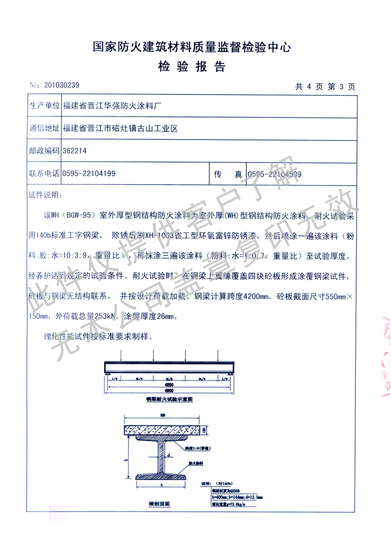 國家防火建筑材料質(zhì)量檢驗(yàn)檢測(cè)中心檢測(cè)通過的《檢驗(yàn)報(bào)告》